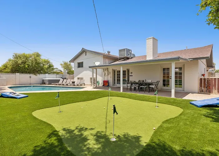 Il Fashion Square si trova a 3 km da questa casa vacanze, mentre gli ospiti possono visitare il Pangaea Land of the Dinosaurs, che si trova a 3,1 km. Questa villa con 1 camera da letto permette di accedere a luoghi di culto come Glass and Garden Community Church, a 700 metri. La villa Desert Pearl Hot Tub For 8 Pool By Games è a 10 minuti in macchina dal Phoenician.